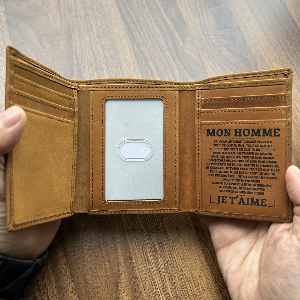 Trifold Leather Wallet for Men Christmas Gift Love From Wife