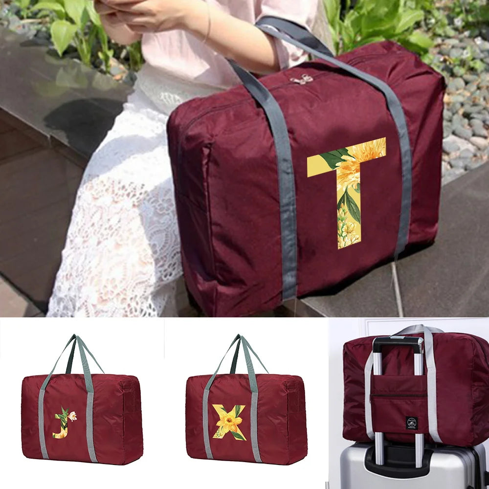 This travel bag features a floral letter name pattern design and offers versatile portability for your essentials. It is foldable, making it easy to store when not in use.