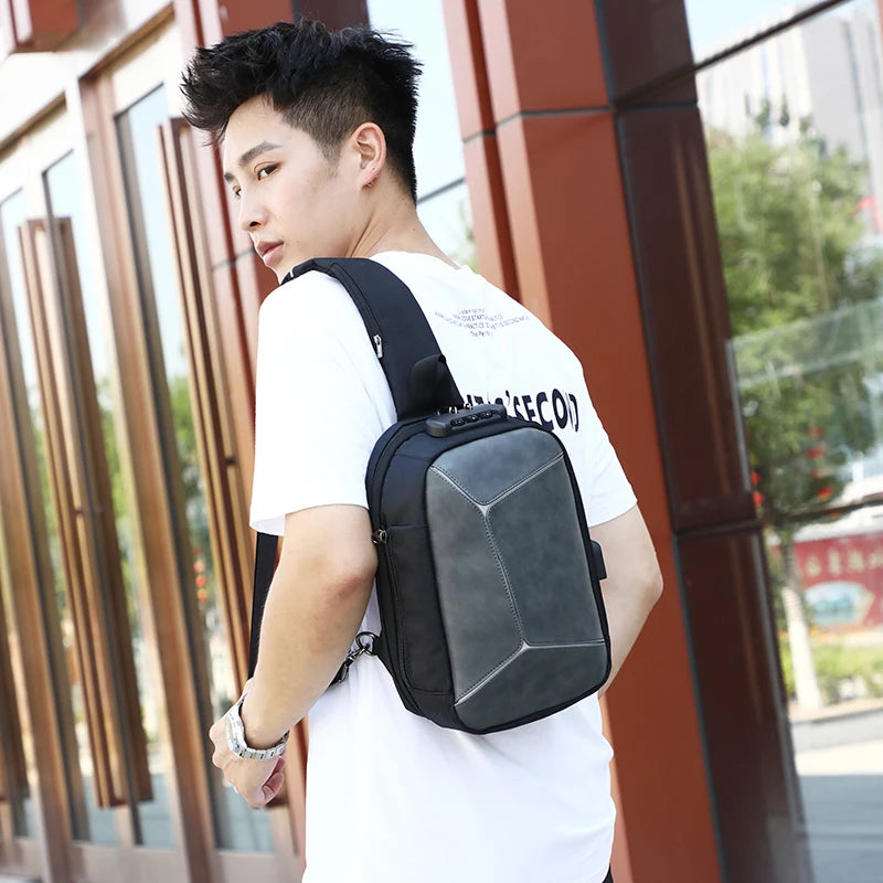 Unisex Sling Chest Pack USB Charging Sports Crossbody Handbags