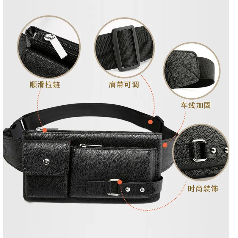 This stylish waist pack is made of high-quality PU leather, perfect for outdoor activities. It features a waterproof design and an adjustable hip belt for a comfortable fit.
