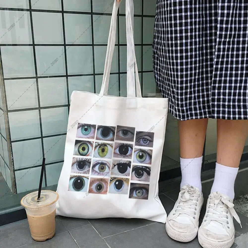 Description:High street big capacity shopper bag ideal for teens or school useFeatures: Vintage style with eye print design Spacious and durable canvas material Perfect for urban or punk fashion Convenient shoulder strap for easy carrying Unique Gothic-inspired look This product may be available in additional colours and sizes. Please contact...