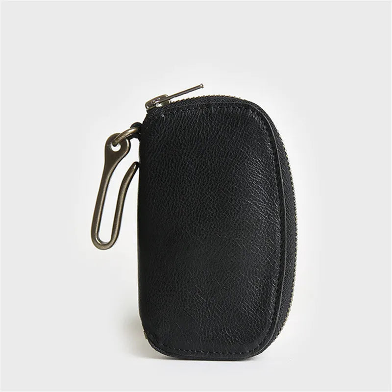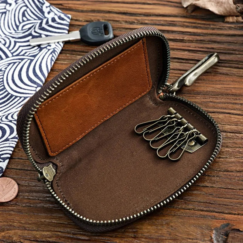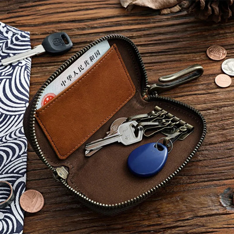 Vintage Cowhide Leather Key Wallet Male Key Holder Organizer Housekeeper Purse
