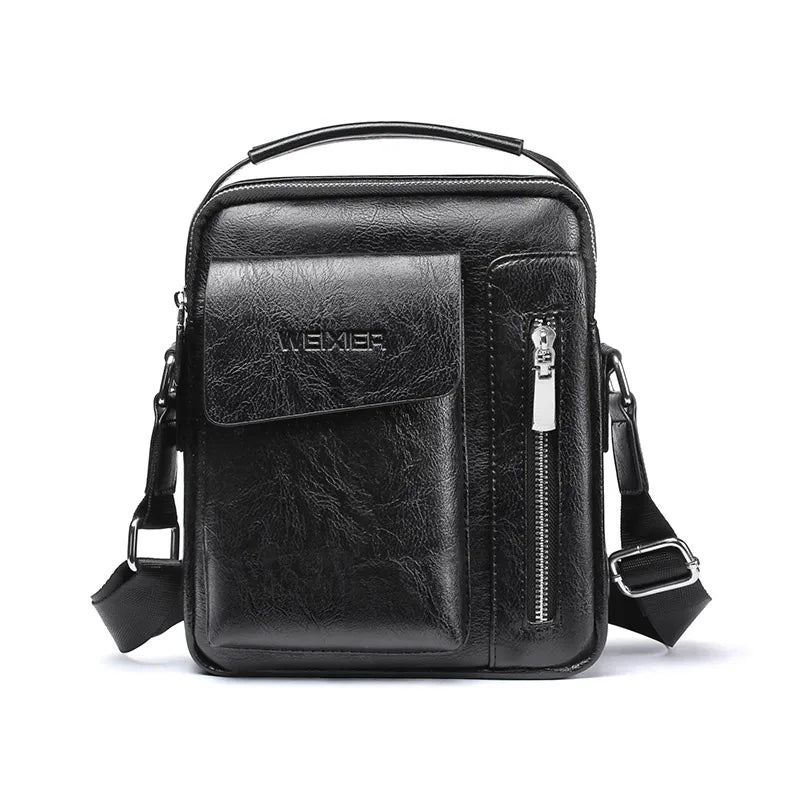 This casual men's shoulder bag is made of high-quality PU material with a spacious capacity. It can be used as a top handle tote bag for added versatility.