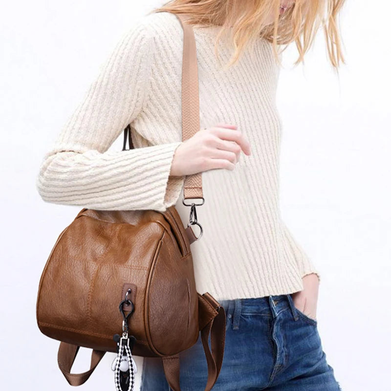 Vintage Leather Backpack for Women - Travel Shoulder Bag