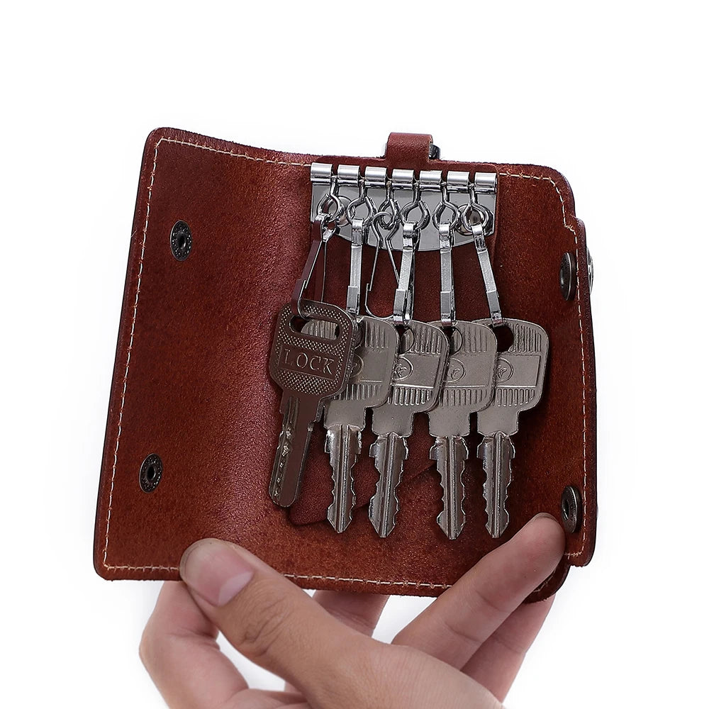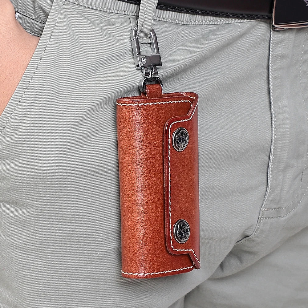Keep your keys organized with this vintage leather key holder. The housekeeper keychain covers protect your keys and keep them secure.