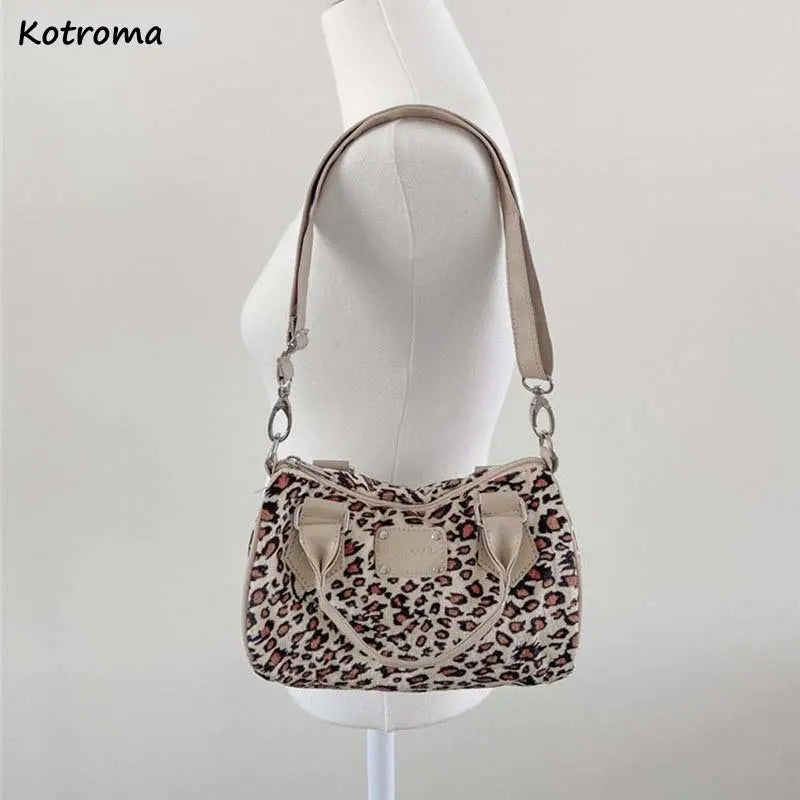 Vintage Leopard Underarm Shoulder Bag Women Zipper Office Lady Handbag
