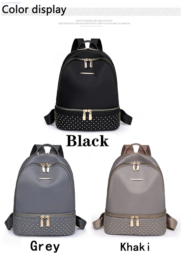 Description:This retro backpack features a stylish design with an anti-theft pocket. Made of durable Oxford cloth, it offers ample storage and adjustable straps for comfort.Features: Vintage style backpack with rivet accents Constructed from durable Oxford cloth material Anti-theft pocket for added security Adjustable shoulder straps for comfortable wear Spacious interior...