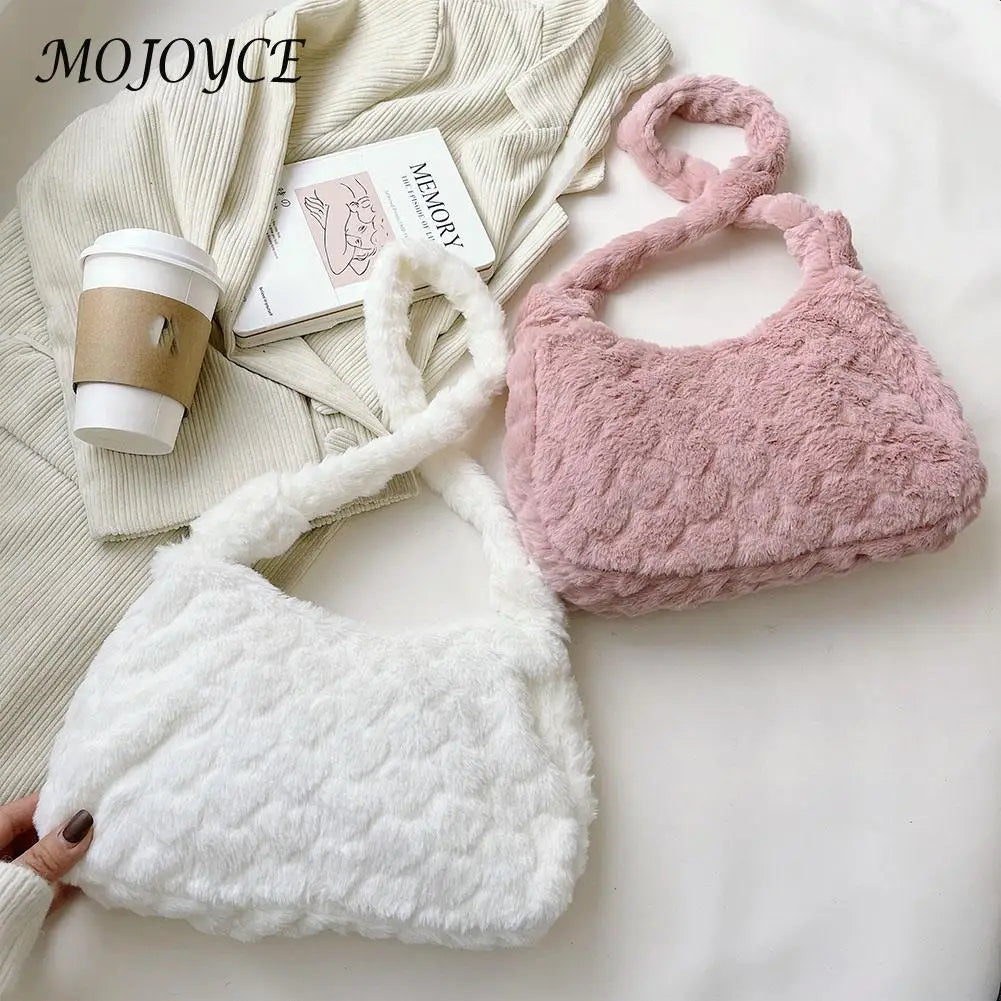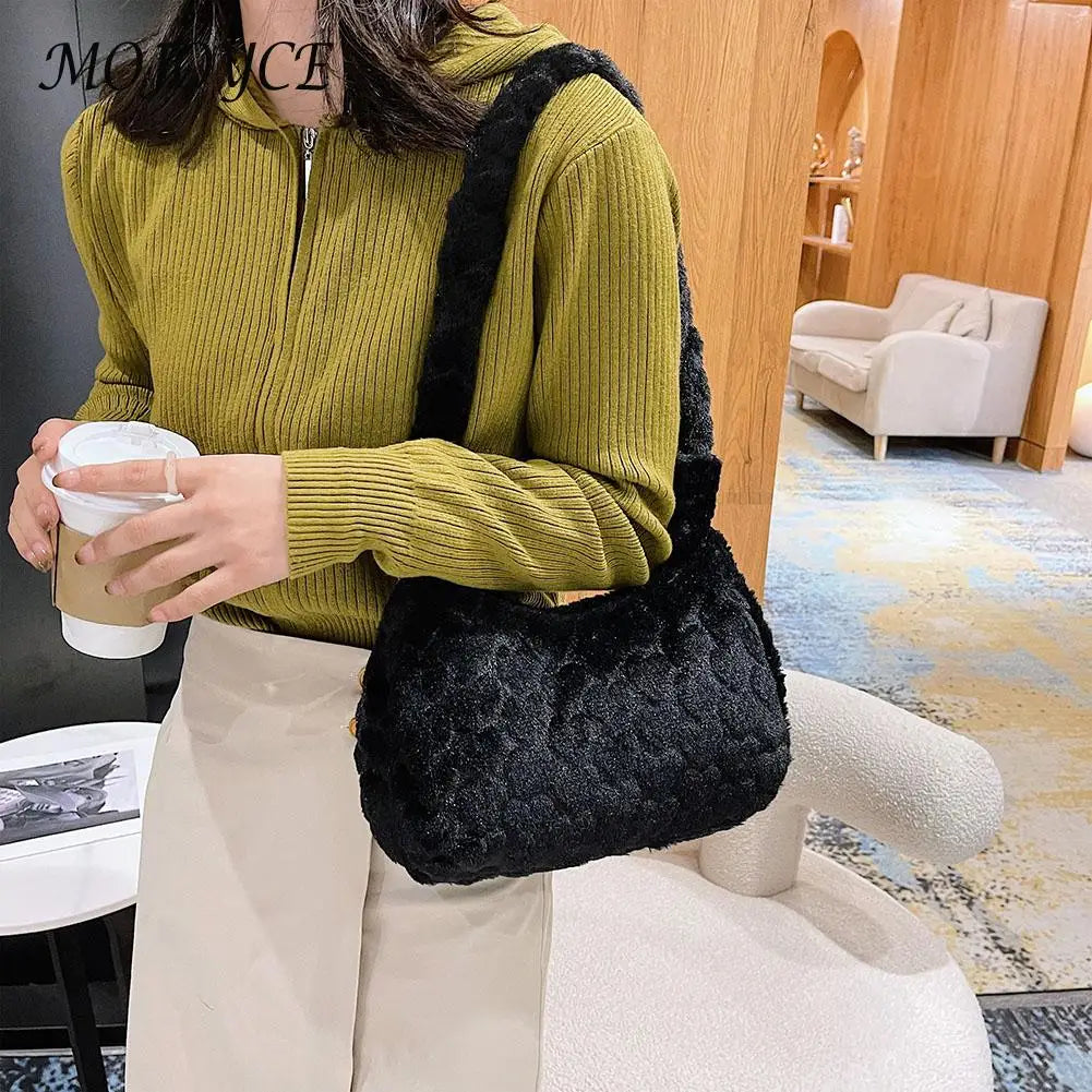 Vintage Plush Fur Flower Shoulder Bag Winter Casual Small Armpit Bag