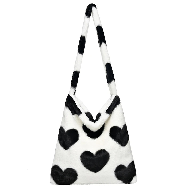 Vintage Women Handbag Large Capacity Soft Plush Ladies Tote Bag Love Print