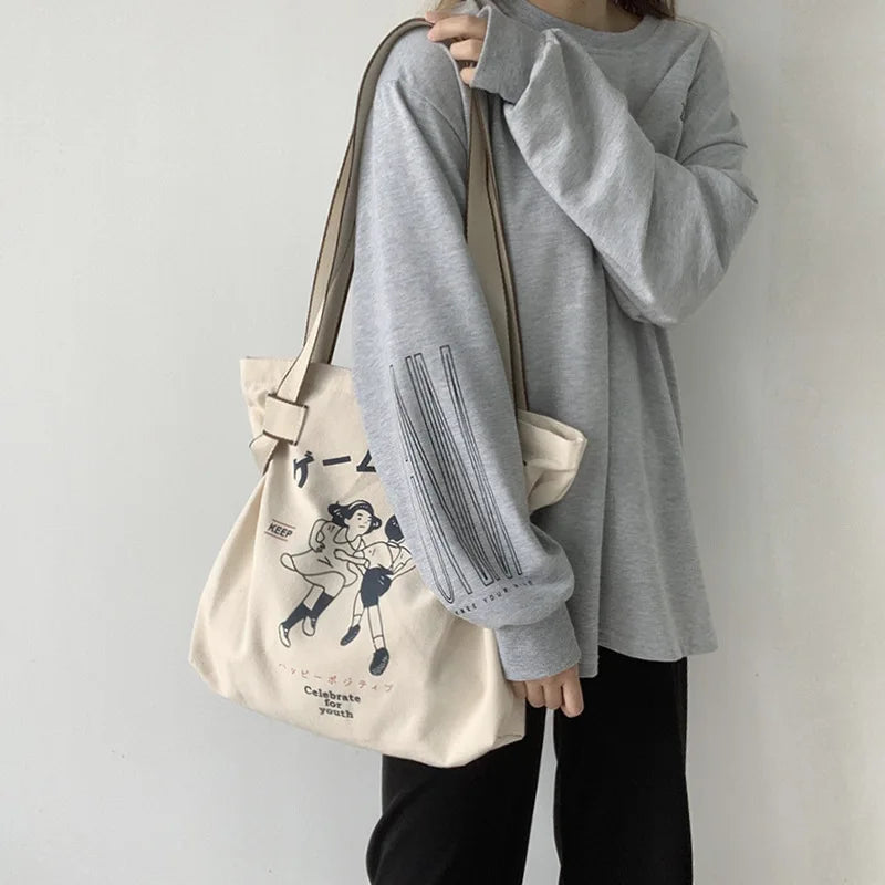 Vintage Women's Shoulder Bag Large Capacity Canvas Handbag Eco Tote