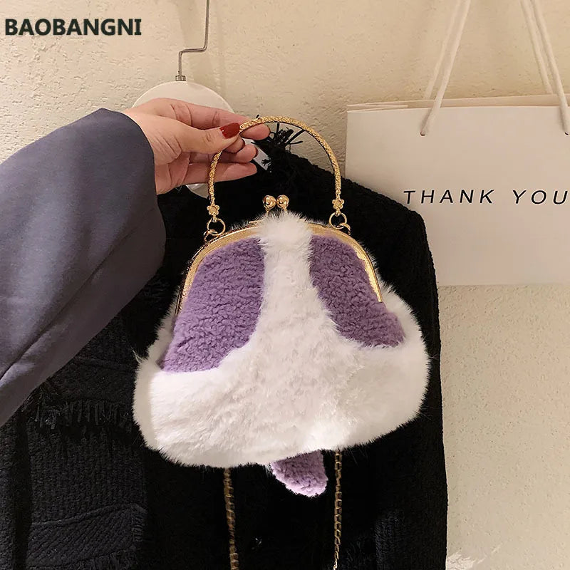 Warm Plush Clip Handbags Women's Plush Shoulder Crossbody Bag