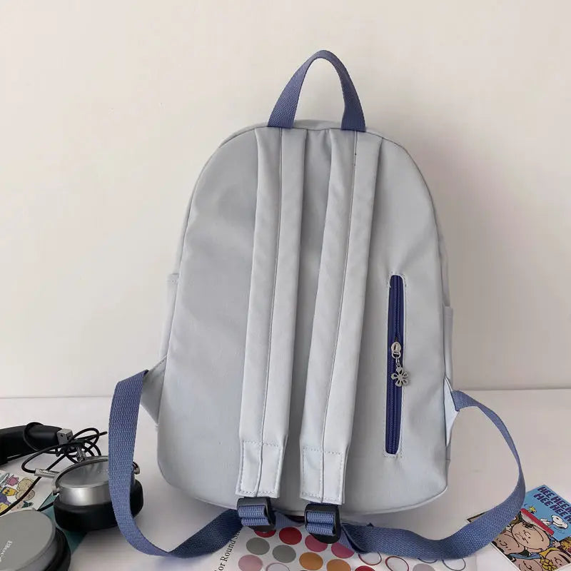 This unisex backpack is made of waterproof canvas material, perfect for students. It features a big capacity with side pockets and a preppy Harajuku Ulzzang style.