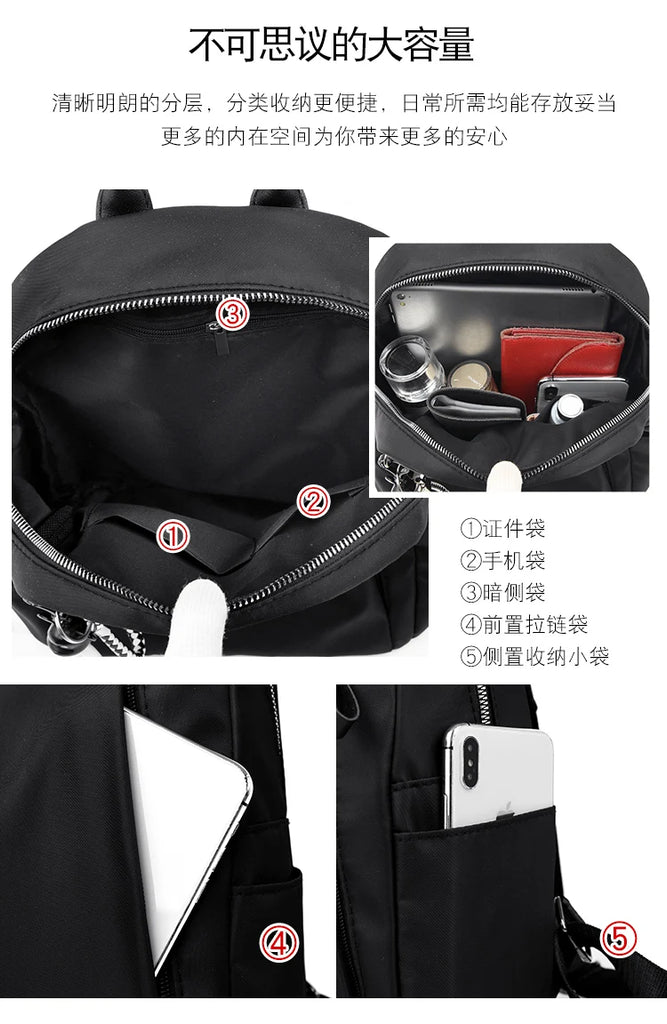Stay stylish and organized with this waterproof nylon backpack designed for women. Perfect for school, travel, or everyday use.