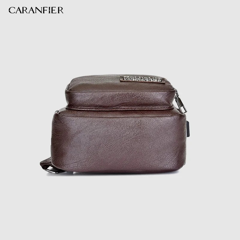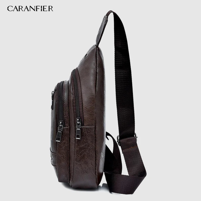 Waterproof PU Shoulder Bag Men'S Charging Bag USB Chest Bag Messenger Bag