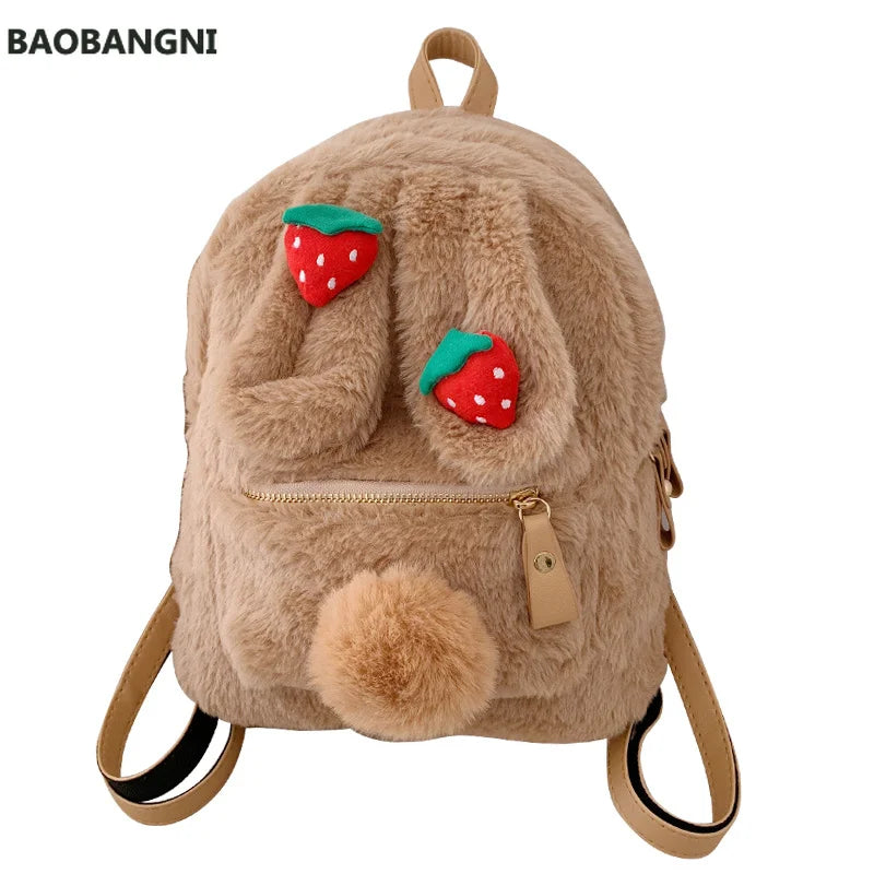 Winter Faux Fur Backpack Rabbit Ear Women Travel Shoulder Bags Plush Bagpack