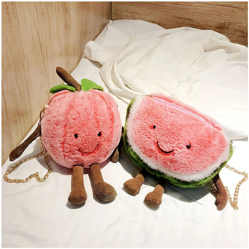 Stay warm and stylish with this adorable plush fruit handbag. Perfect for winter outings and carrying your essentials.