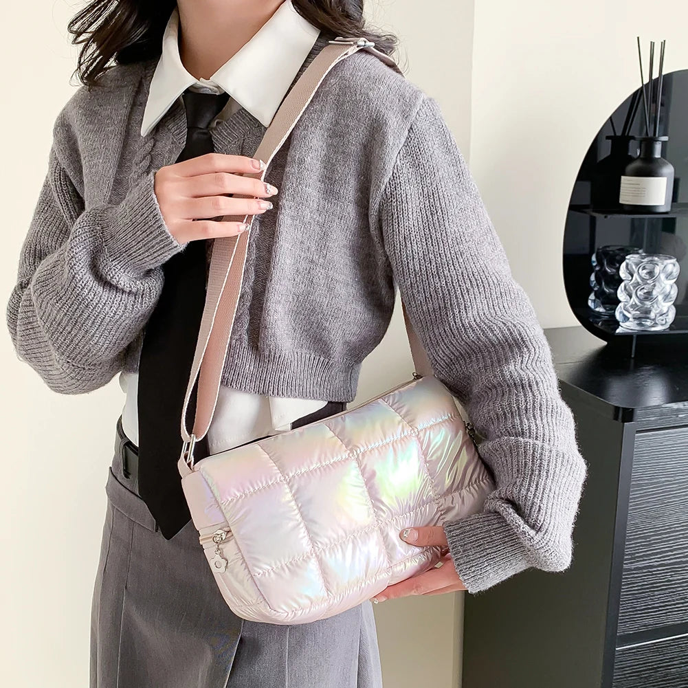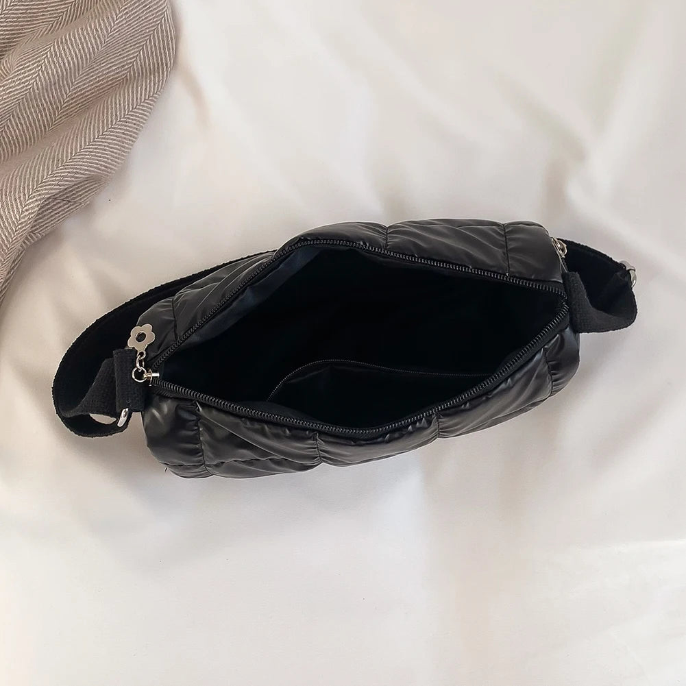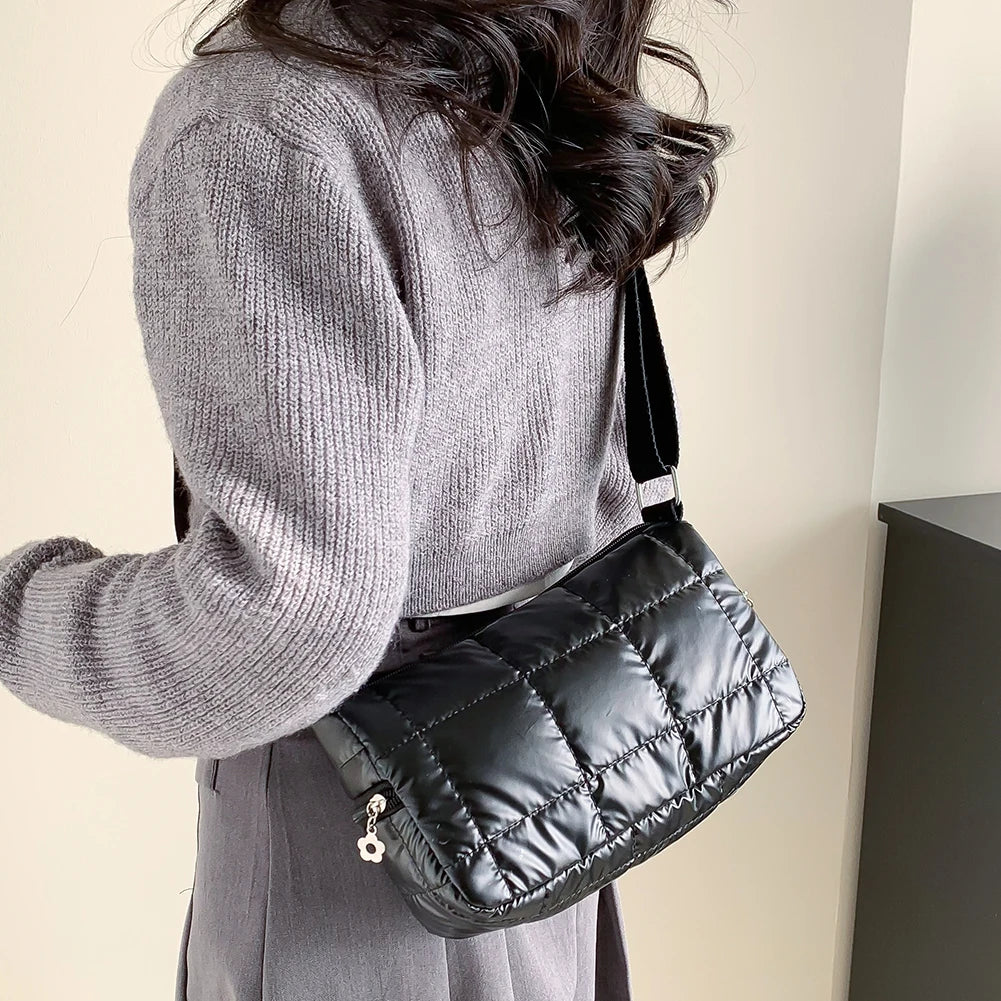 Winter Quilted Crossbody Bag Check Messenger Soft Nylon Portable