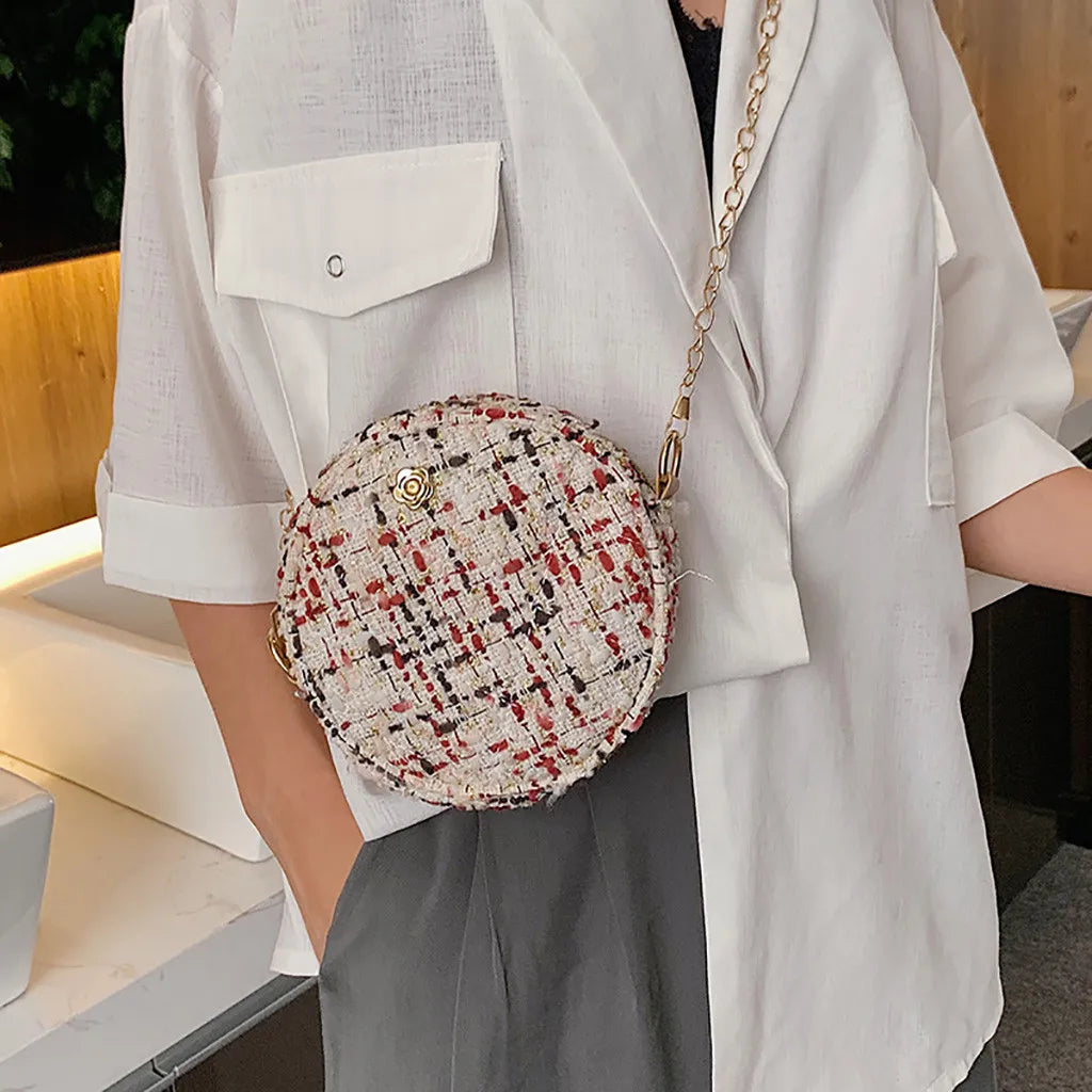 Stay stylish and warm with this elegant small round handbag made from high-quality wool. Perfect for all occasions.