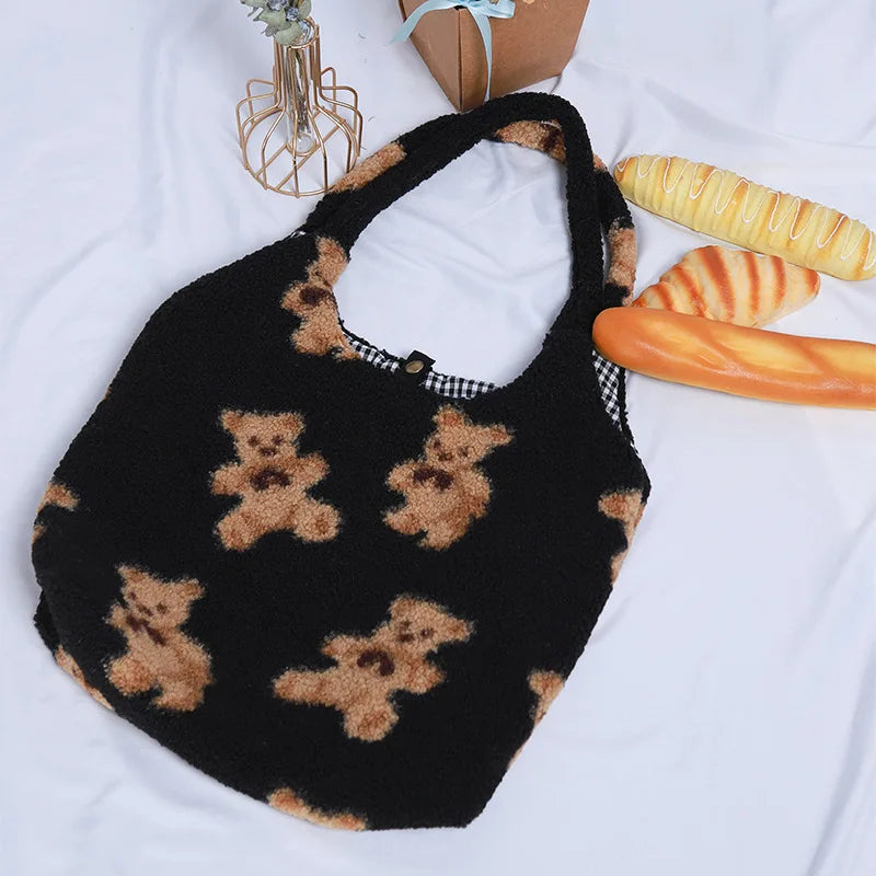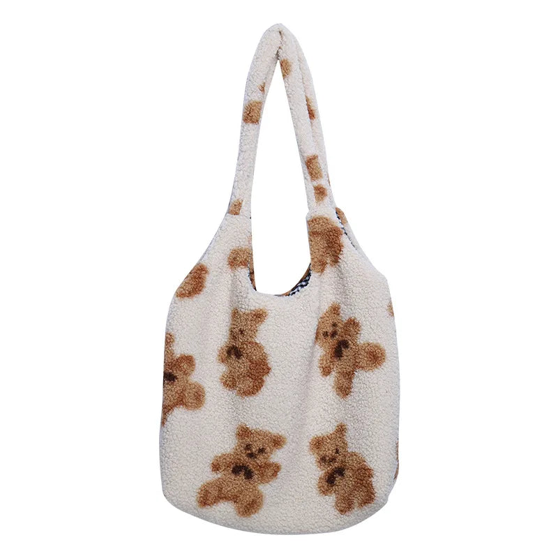 Winter Women's Cartoon Handbags Faux Lamb Swool Plush Shoulder Bag