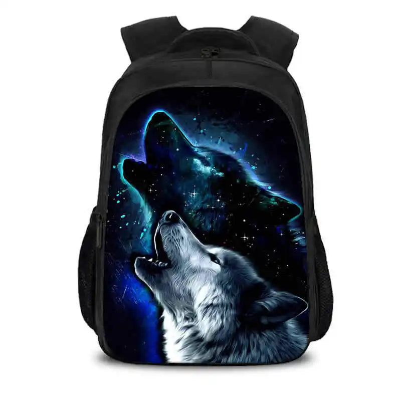 This wolf-themed school backpack is perfect for teenage students. It's durable, spacious, and stylish, making it a great choice for carrying books and supplies.