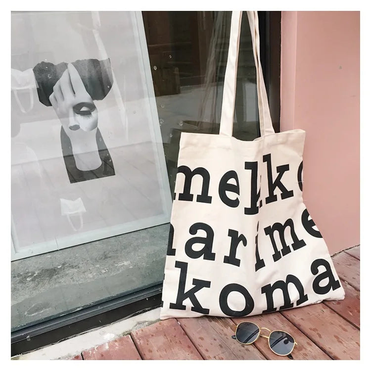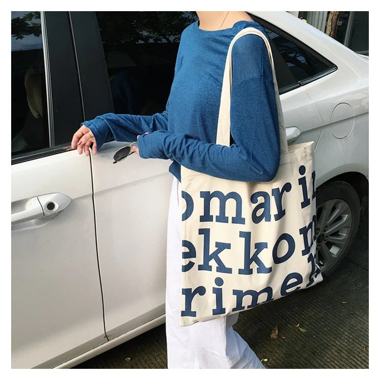Women Alphabet Canvas Shoulder Bags Female Casual Letter Printed Tote Handbags