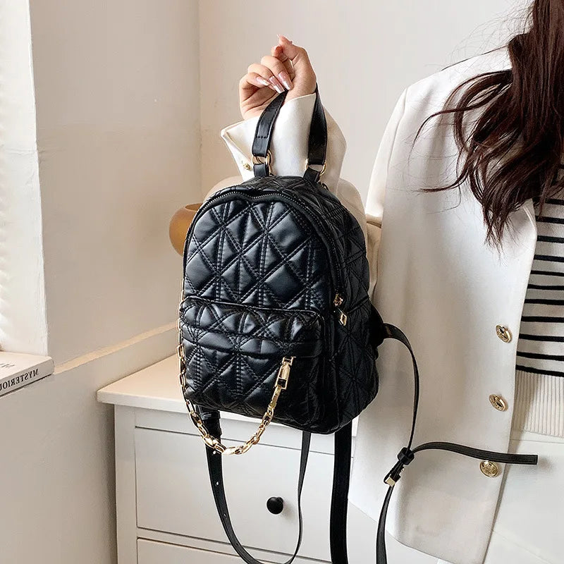 This stylish women's backpack is made of high-quality PU leather, perfect for everyday use. It features a large capacity and adjustable shoulder straps for added comfort.
