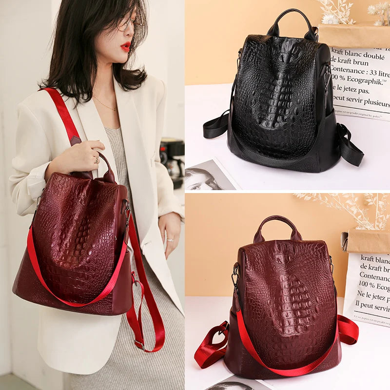 Women Backpack Large Female Back Bag Crocodile pattern Leather High Travel Bags