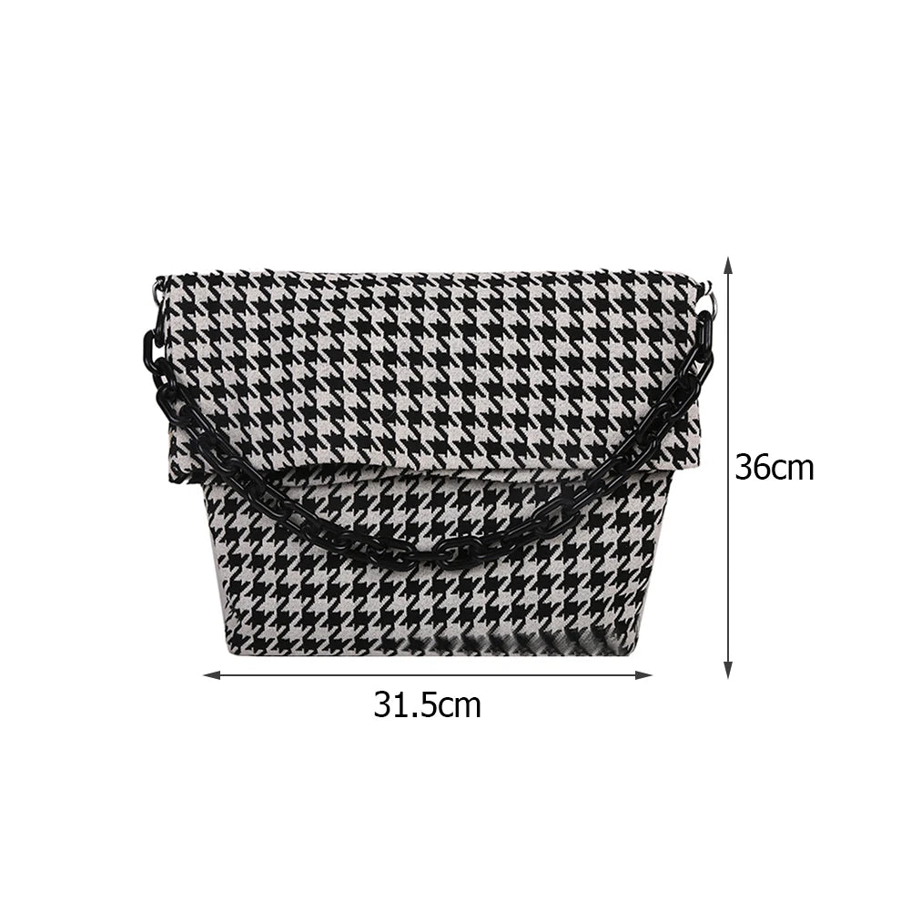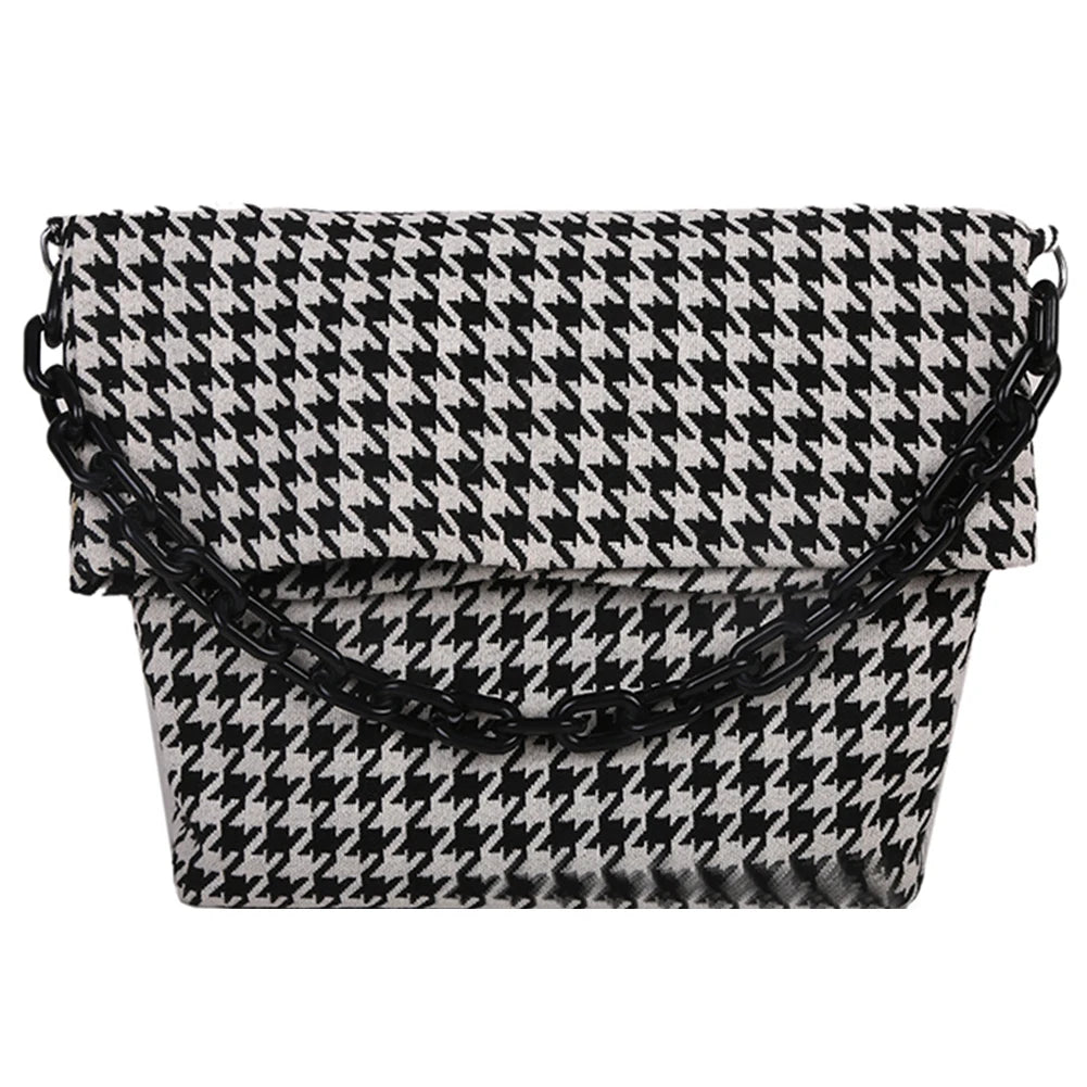Women Canvas Houndstooth Shoulder Bag Chain Tote Handbag