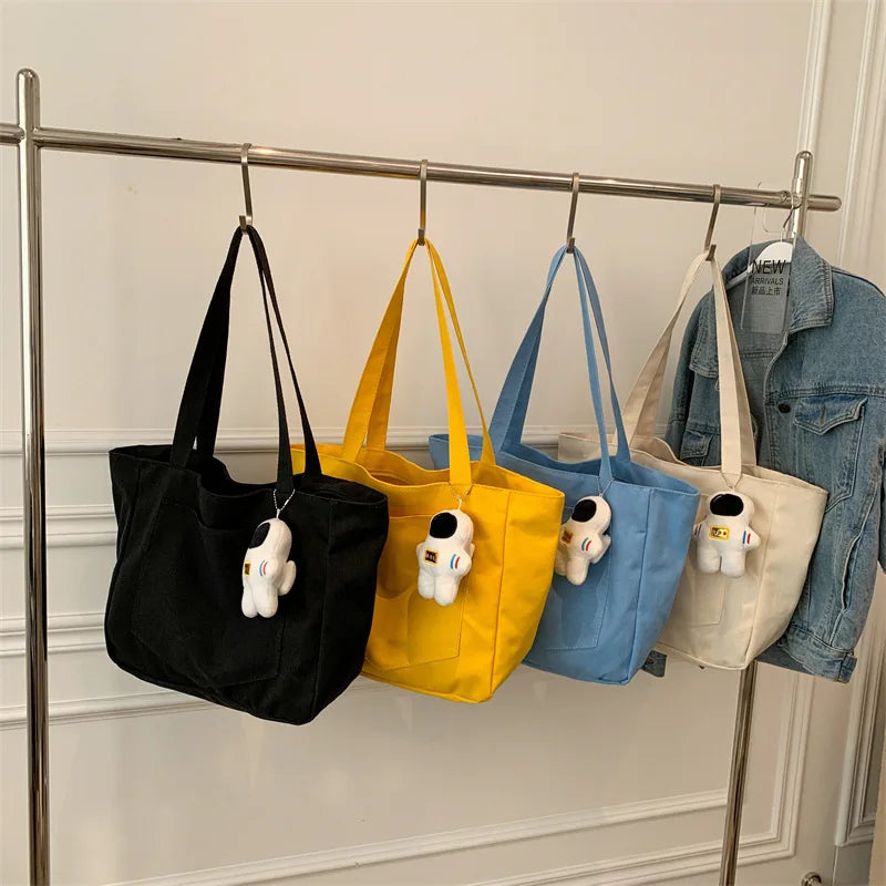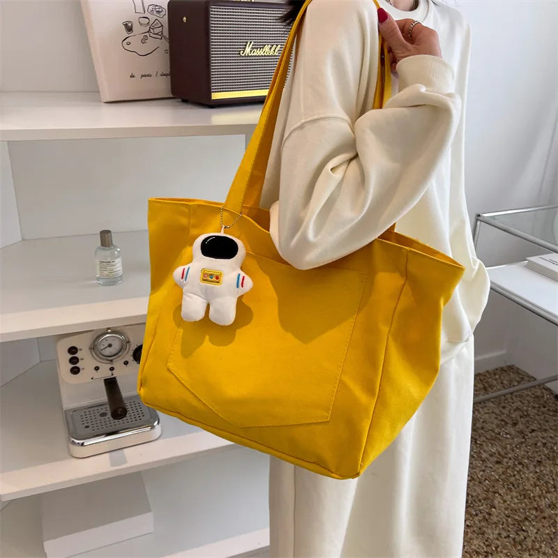 Women Canvas Shoulder Bag Solid Handbag Large Capacity Shopping Bag Zipper Tote