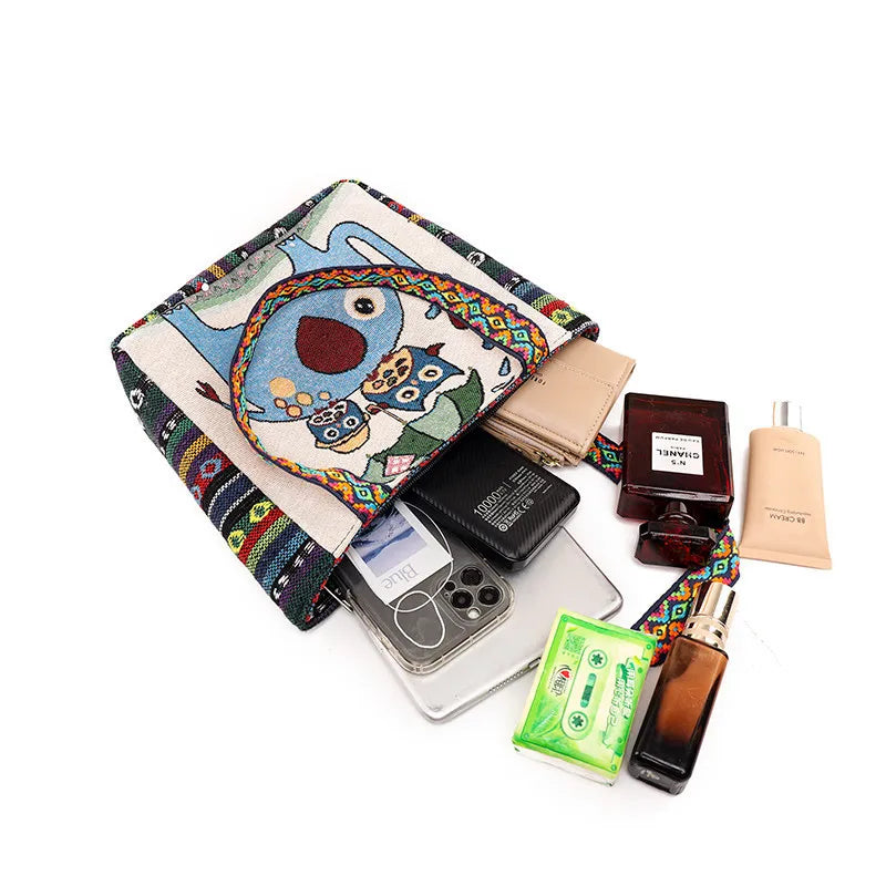 Women Cat Handbag Canvas Bag Large Capacity Shoulder Bag