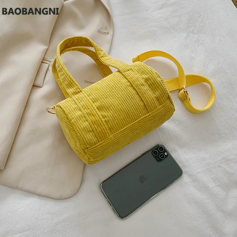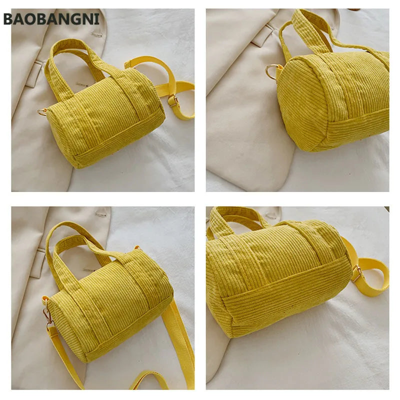 Women Corduroy Barrel Shaped Bag Canvas Handbag Zipper Shoulder Crossbody Bags
