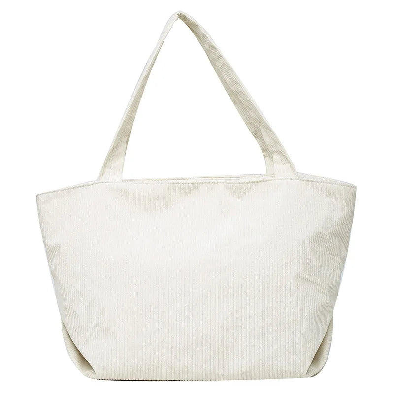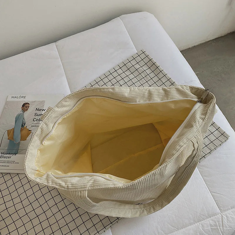 Stay stylish and practical with this casual corduroy tote bag. Perfect for shopping or everyday use, this handbag features a large capacity and secure zipper closure.