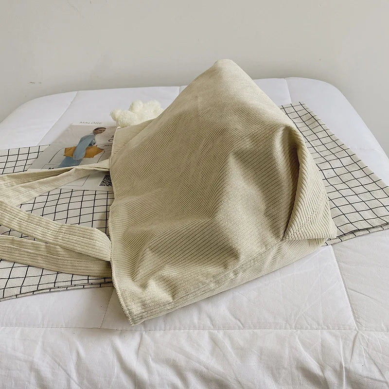 Women Corduroy Tote Bag Winter Shoulder Handbag Zipper Large Capacity