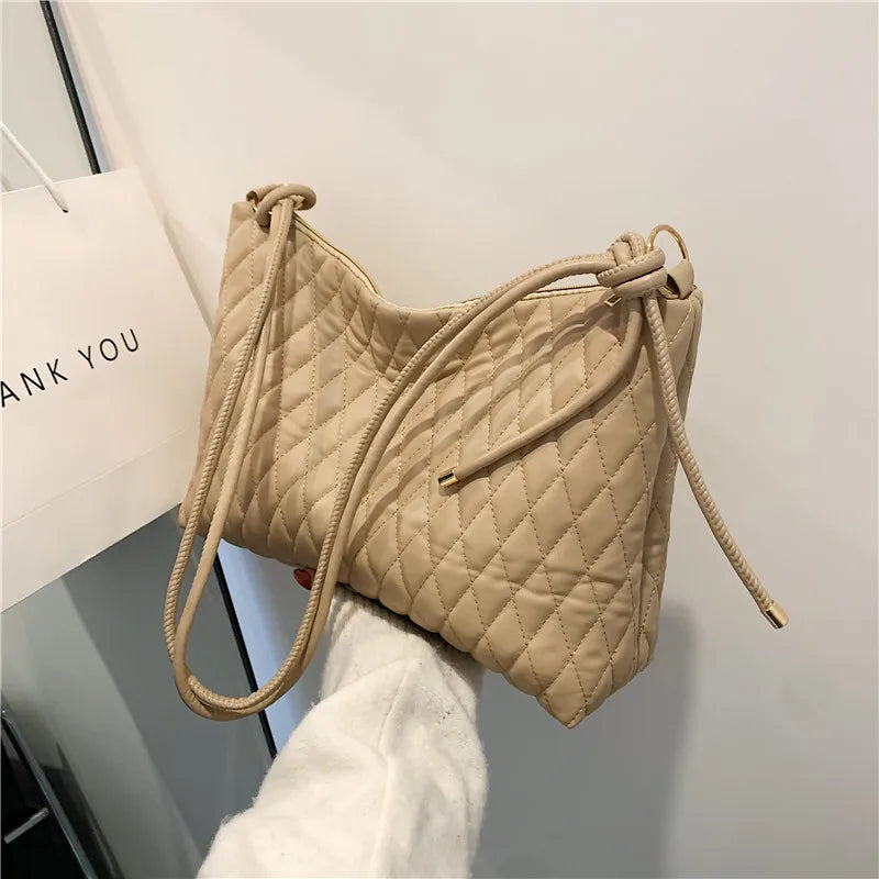 Stay stylish and organized while traveling with this portable women's handbag. Made of cotton padded PU leather, it offers a large capacity for all your essentials. Ideal for autumn and winter seasons.