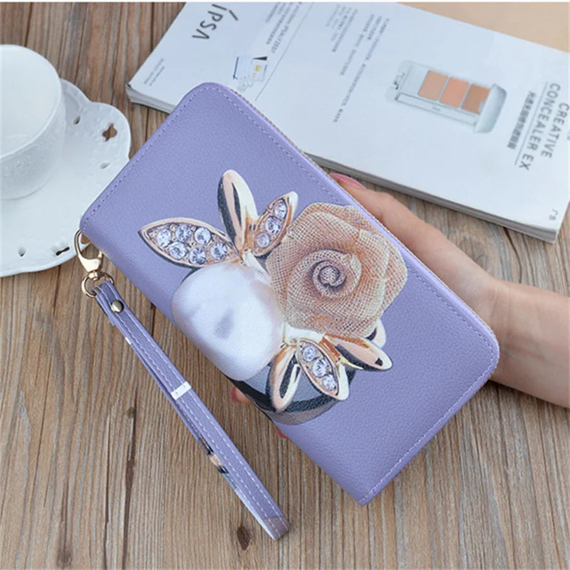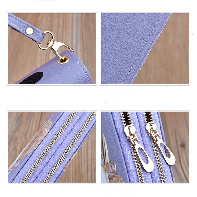 Women Double Zipper Wallet Long Printed Large Capacity Mobile Wallets For Women