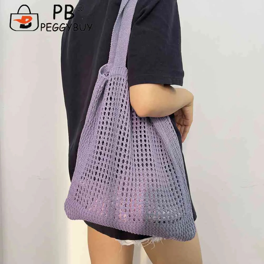 Women Hollow Knitted Shoulder Bag Crochet Tote Shopper Handbags Beach Bag