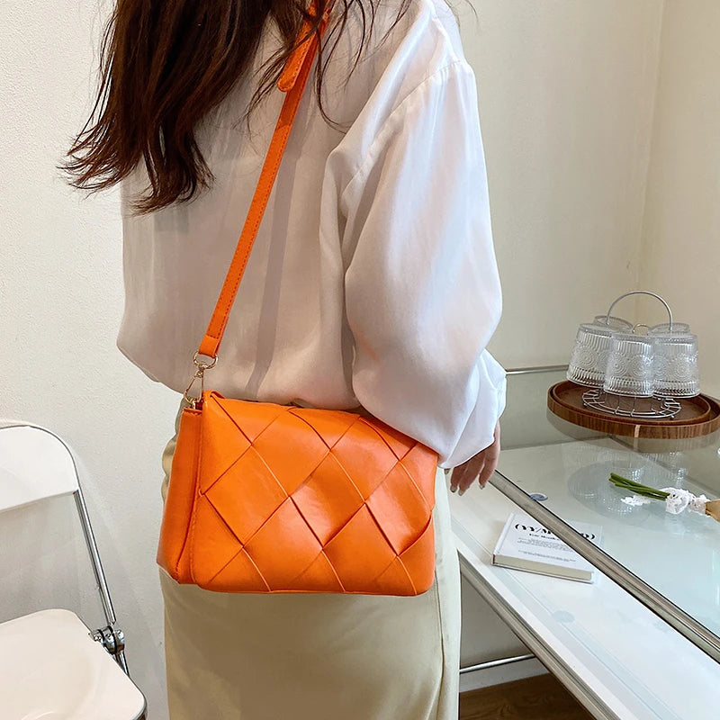 This stylish handbag is perfect for any occasion. It features a woven design and a single shoulder strap for easy carrying. The square shape adds a modern touch to your outfit.