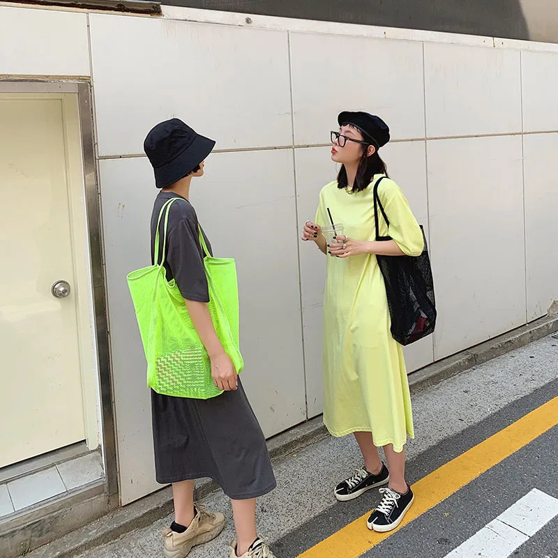 Women Mesh Handbag Foldable Shopping Shoulder Bags Large Casual Tote