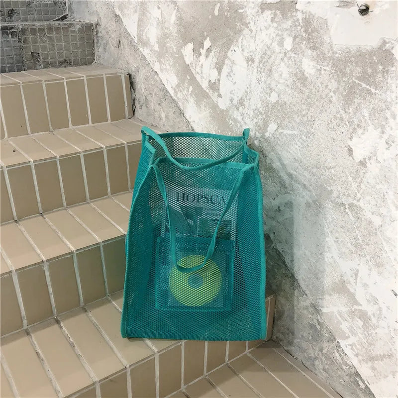 This women's mesh handbag is perfect for daily use, shopping, beach trips, and more. It is lightweight, foldable, and reusable, making it a versatile accessory for any occasion.