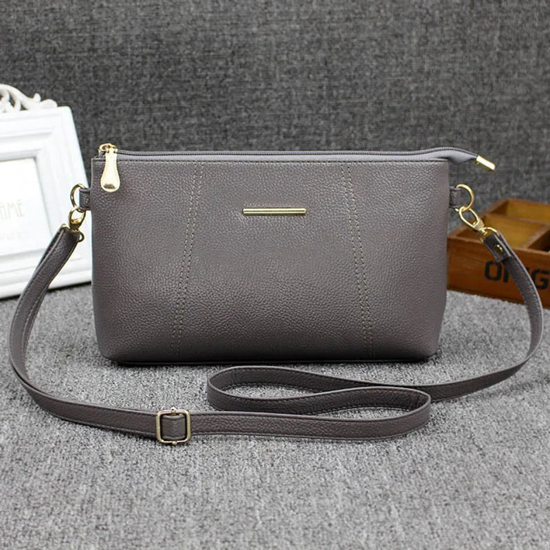 Women Messenger Bag PU Leather Handbag Zip Solid Casual Shoulder Bag