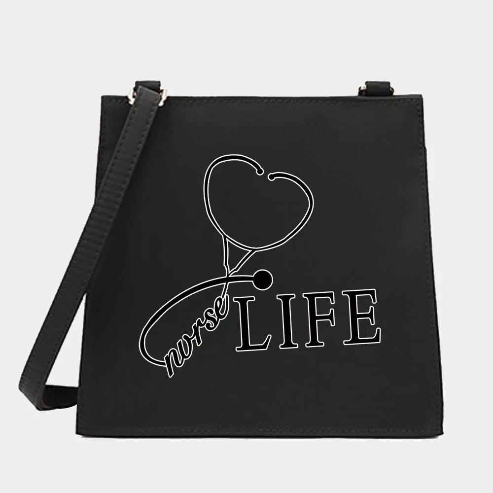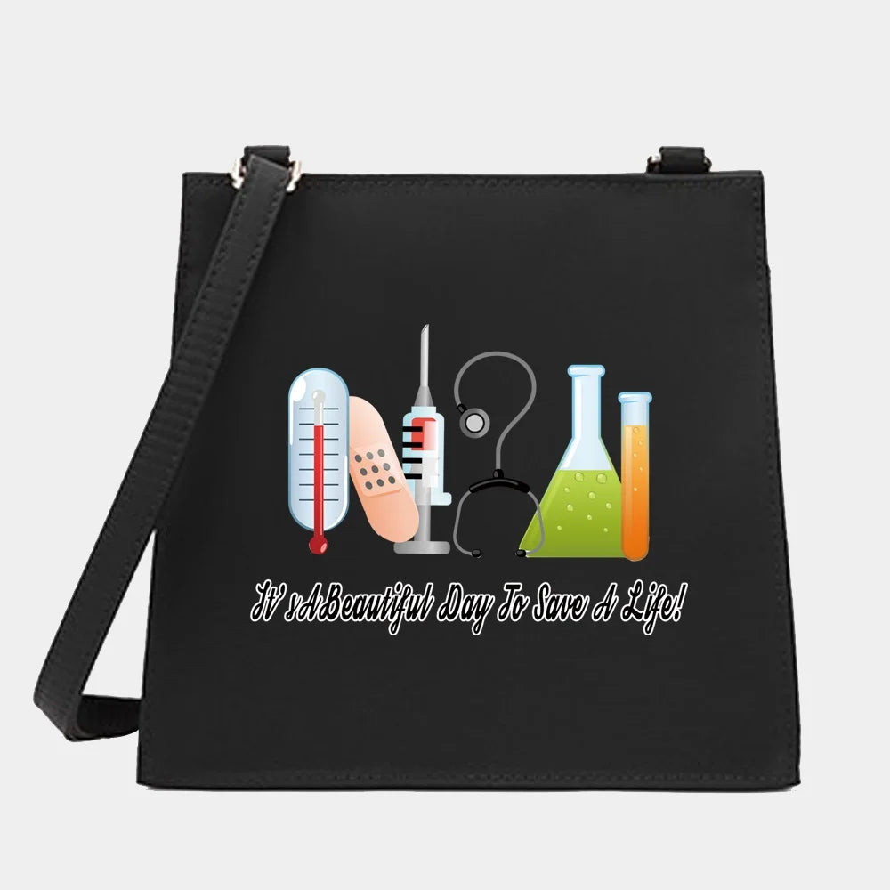 Women Nurse Series Shoulder Crossbody Bag Square Pattern Tote Handbag