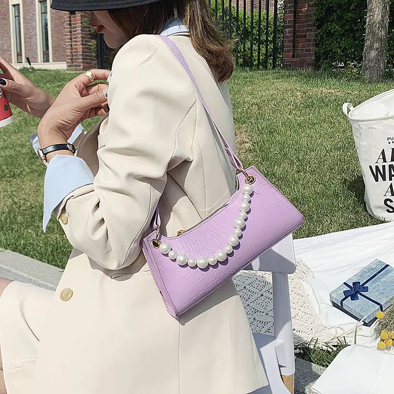 Description:This shoulder bag features a retro design with a patent leather finish, adorned with a butterfly and diamonds. The textured pearls add a touch of elegance, making it a stylish choice for any occasion.Features: Retro shoulder bag with patent leather finish Butterfly and diamonds embellishments Textured pearls for added elegance...