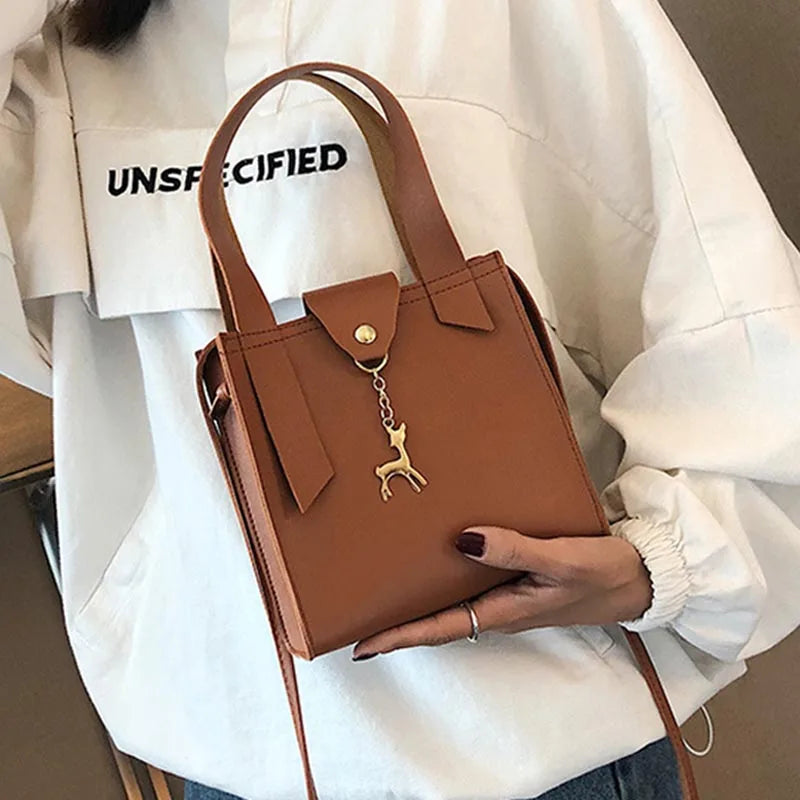 Women PU Leather Handbags Small Square Shoulder Bag Female Deer