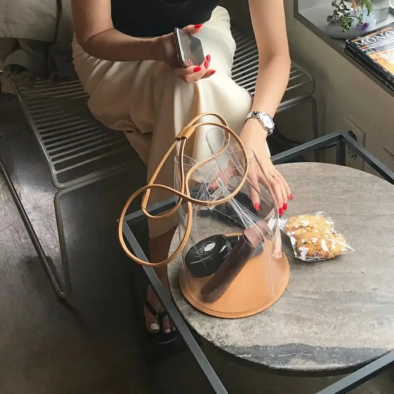 Women PVC Patchwork Transparent Bucket Jelly Bag Style Big Capacity