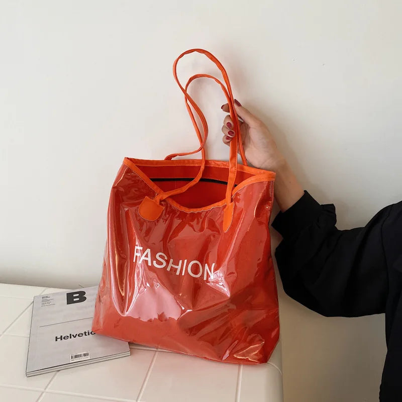 Women PVC Reusable Shopping Bag Clear Beach Tote Bag Waterproof