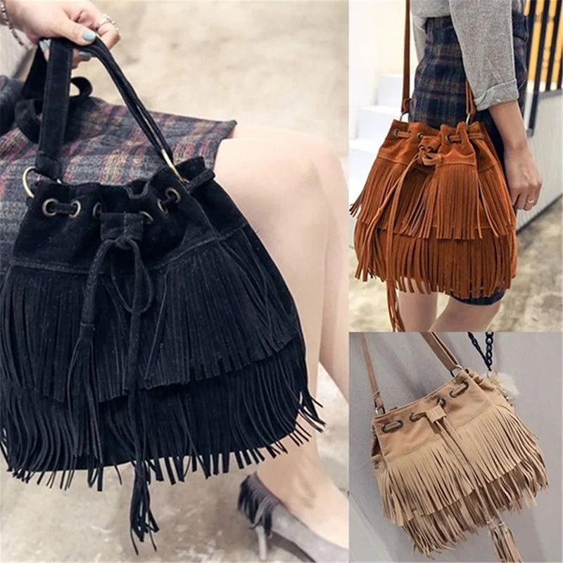 Women Shoulder Bag Solid Tassels Cross Body Bag Tassel Fringe Handbag