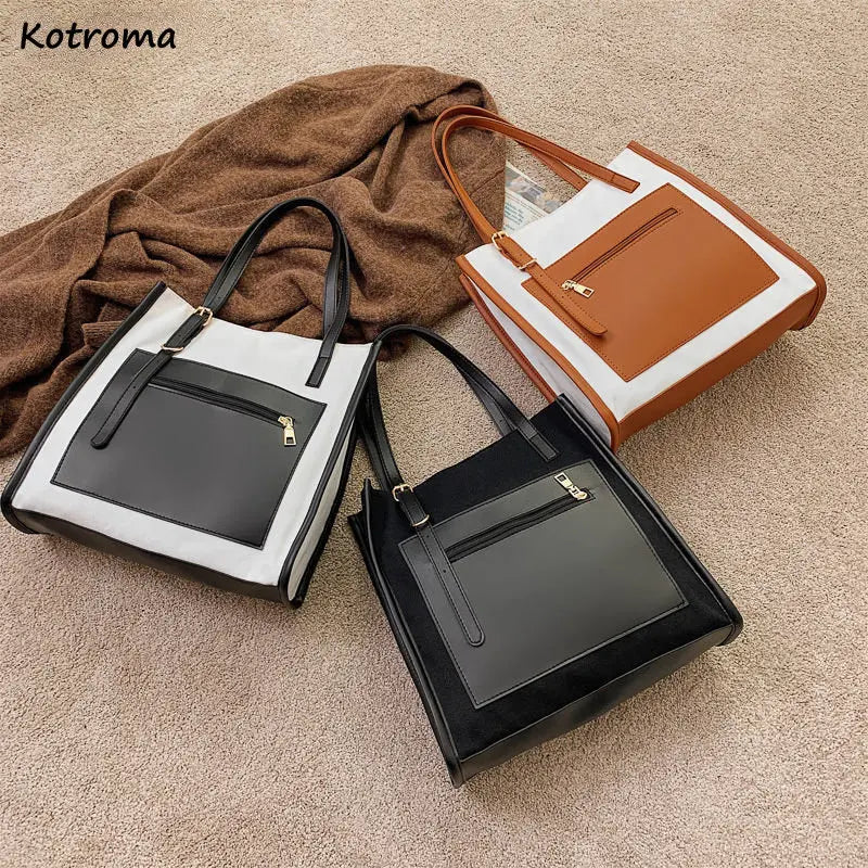 Women Shoulder Bags Large Capacity Patchwork Casual Tote Shopping Bags