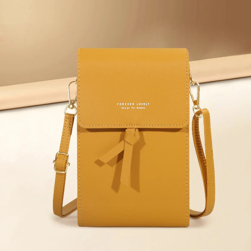 Stay trendy with this versatile small crossbody bag that features a touch screen phone compartment. Perfect for carrying your essentials while on the go.