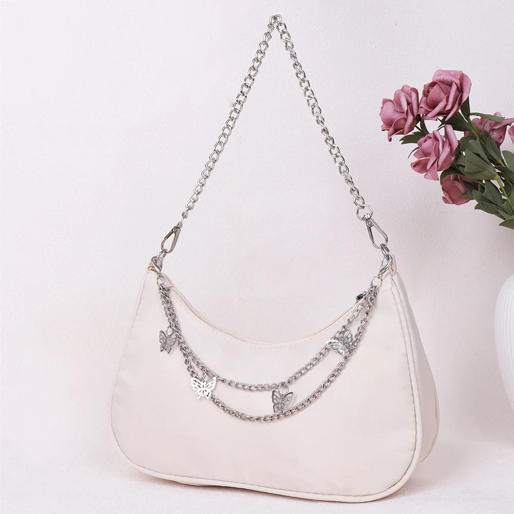 Elegant shoulder bag with butterfly chain design for a stylish and casual look. Perfect for everyday use or shopping trips.