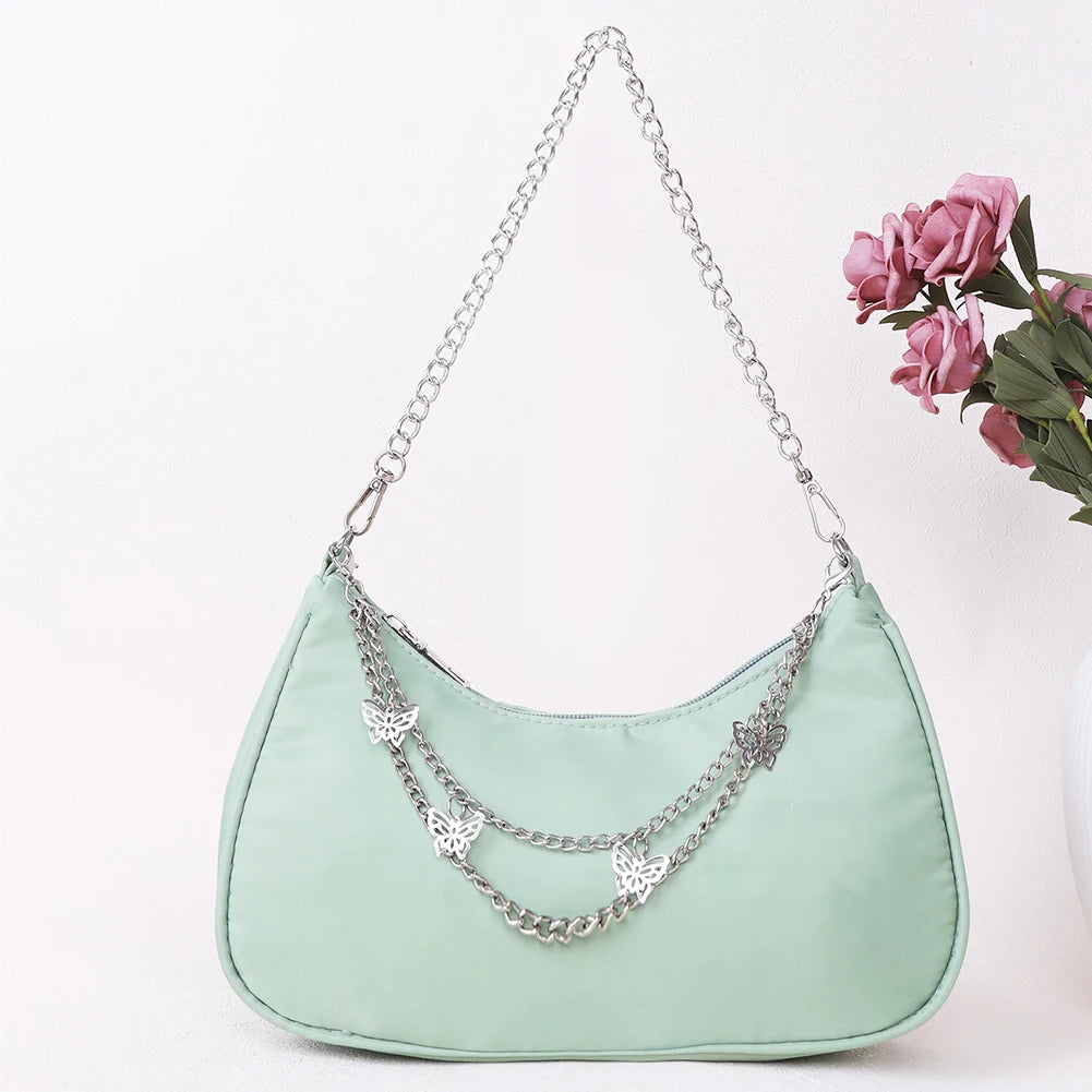 Women Solid Shoulder Underarm Bags Casual Ladies Shopper Purses Butterfly Chain
